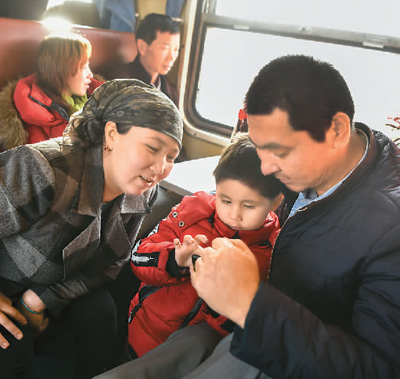 | 11月25日,在新疆塔克拉瑪干沙漠西南緣的喀什-和田對開火車“和田玉龍號”上,旅客們正在休息。 |