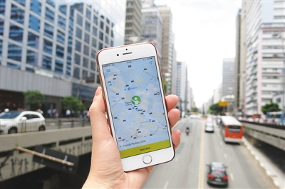圖為2017年1月5日,在巴西圣保羅,用戶使用安裝了“99”軟件的手機。巴西移動出行服務商“99”發布公報說,該企業已與中國滴滴出行簽署戰略合作協議,滴滴出行將成為“99”的戰略投資者,并加入“99”的董事會。kHx安康新聞網