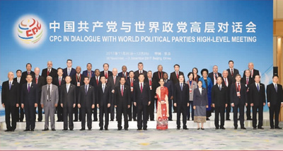 2017年11月30日,中國共產(chǎn)黨與世界政黨高層對話會在北京召開。12月1日,習(xí)近平總書記在會上發(fā)表講話時這樣說:中國共產(chǎn)黨愿廣交天下朋友。長期以來,中國共產(chǎn)黨同世界上160多個國家和地區(qū)的400多個政黨和政治組織保持著經(jīng)常性聯(lián)系,“朋友圈”不斷擴大。面向未來,中國共產(chǎn)黨愿同世界各國政黨加強往來,分享治黨治國經(jīng)驗,開展文明交流對話,增進彼此戰(zhàn)略信任,同世界各國人民一道,推動構(gòu)建人類命運共同體,攜手建設(shè)更加美好的世界!