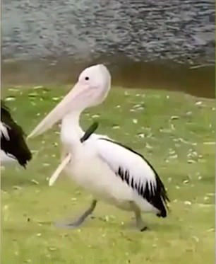 據英國《每日郵報》報道,在澳大利亞西部沿海地區,人們驚訝地發現一只鵜鶘的肩部被巨大的刀刃穿過。這只受傷的鳥被人們發現時,正和其他鵜鶘一起平靜地走著路,刀子隨著它的身體一起晃動。