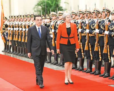 本報北京1月31日電 (記者趙成、杜一菲)國務院總理李克強1月31日下午在人民大會堂同來華進行正式訪問的英國首相特雷莎·梅舉行中英總理年度會晤。
