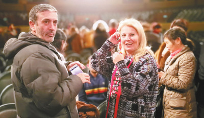 羅馬僑胞蔣鴻建夫婦是和外孫女一同來的。到意大利30多年,蔣鴻建笑妻子錢曉楓,“只要有中國藝術團的演出,每場必看,而且都早早到場”。錢曉楓則“揭發”蔣鴻建:“這次他就是為了帶外孫女才來。”盡管外孫女才2歲,蔣鴻建一本正經地告訴記者:“要讓孩子從小了解中國文化。別看才2歲,她看得懂,還會說上海話呢。”