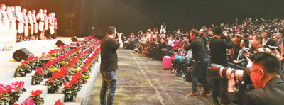 春節在即,“親情中華”2018新春的巡演,被僑胞們視為一年一度喜慶佳節的序曲。威尼斯梅斯特雷科索劇場,演出舞臺索性掛了個大紅條幅:“親情中華威尼斯地區春晚”。僑胞們扶老攜幼、舉家而來,有人還特別選在“親情中華”大幅海報前拍全家福留念。