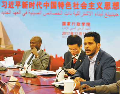 習近平新時代中國特色社會主義思想、人類命運共同體、反腐斗爭、精準扶貧、“一帶一路”……2017年歲末,20位蘇丹政府部級官員來到中國參加國家行政學院的培訓交流。黨的十九大規劃了中國從現在到本世紀中葉的發展藍圖,宣示了中方愿同各方推動構建人類命運共同體的真誠愿望。蘇丹政府決策者們希望更加深入地理解中國和中國共產黨,學習借鑒中國經驗和中國智慧,解讀中國共產黨的“執政密碼”