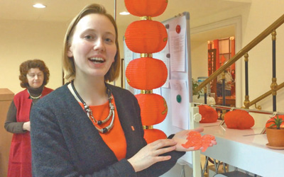 為了更好地傳遞這種信息,文化中心精心策劃了具有本地特色的春節特別活動。位于莫斯科紅場旁的大型百貨商場“古姆”,是俄羅斯最負盛名的高檔商場,從2月8日起,商場進入了“春節月”,邀請著名室內裝飾大師,巧妙地將中國福娃與俄羅斯套娃、中國喜蛋與俄羅斯彩蛋等中俄節日文化元素結合在一起。長廊上,極具中國特色的“紅包”樹掛,讓人流連忘返的精品刺繡展品,充滿中國年味兒的民間藝術糖畫、剪紙,色香味俱全的中國美食,以及商場里循環播放的“恭喜發財”中國新年歌,讓中國春節走進了當地百姓的生活圈。品嘗中華美食是春節期間最受外國人歡迎的一個文化活動,但這次玩出了“新花樣”——與俄羅斯總廚協會合作,舉辦中俄美食之夜,由中俄兩方的廚師團隊采用相同食材做出不同菜品,由媒體記者、美食家和用餐客人共同品鑒。