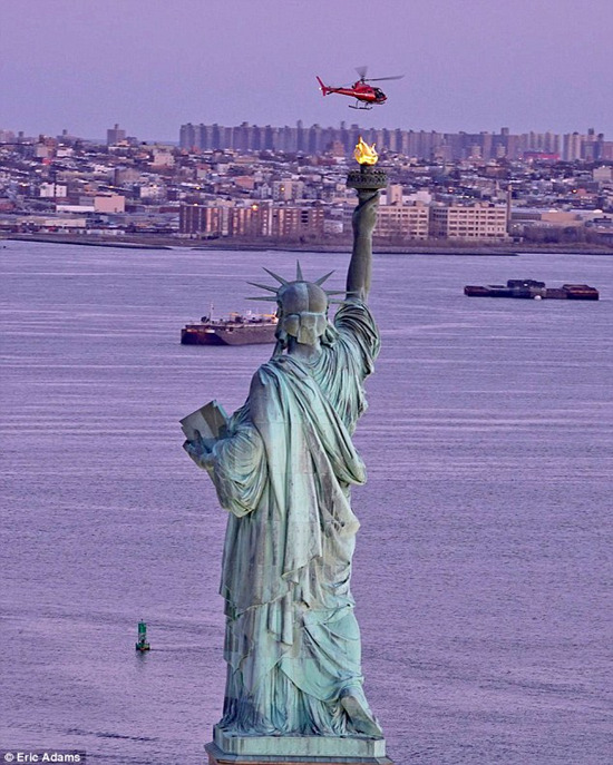 攝影師埃里克·亞當斯(Eric Adams)碰巧拍到了直升機墜毀幾分鐘前飛過自由女神的照片。