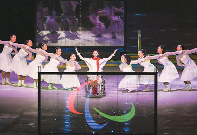 3月18日,2018年平昌冬殘奧會閉幕式在韓國平昌奧林匹克體育場舉行。閉幕式北京文藝表演上,現場大屏幕播放了北京2022年冬殘奧會會徽“飛躍”短片,集中展現了殘疾人運動員以堅強的意志作為精神的翅膀,在冬殘奧賽場上放飛青春夢想。伴隨著主題歌《我要飛》,中國殘疾人藝術團的聽障演員們奉獻了一場精彩表演。NSv安康新聞網