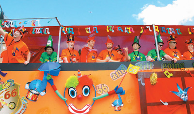 圖為人們參加狂歡節花車游行。68N安康新聞網