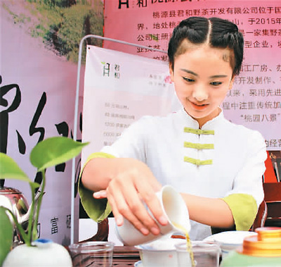 | 茶藝師表演桃源紅茶的沖泡技藝。 |