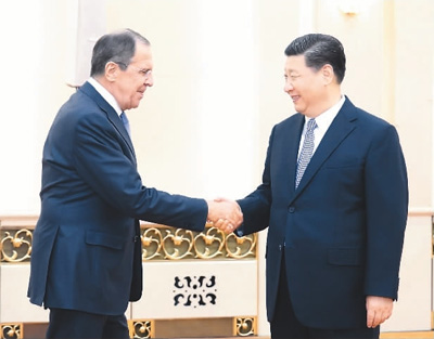 | 4月23日,國家主席習(xí)近平在北京人民大會堂會見俄羅斯外長拉夫羅夫。新華社記者 姚大偉攝 |