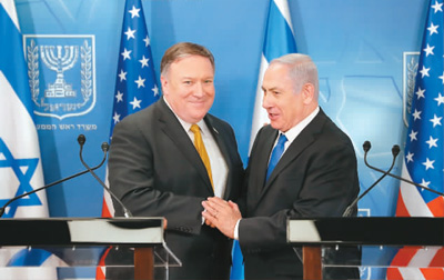| 圖為4月29日,在以色列特拉維夫,以色列總理內塔尼亞胡(右)與美國新任國務卿蓬佩奧出席聯合新聞發布會。新華社/美聯 |
