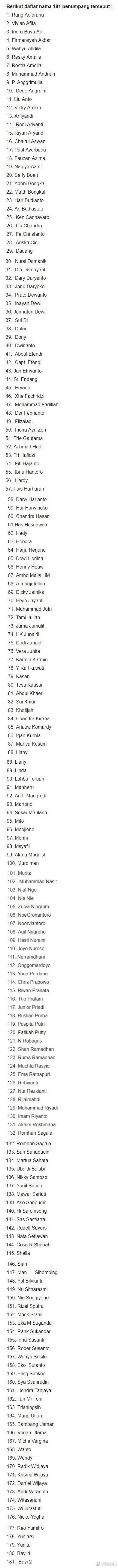 據俄羅斯衛星網報道,印尼國家搜救局發言人表示,此次墜機事件無人生還。據印尼媒體,機上乘客及機組人員名單已經公布: