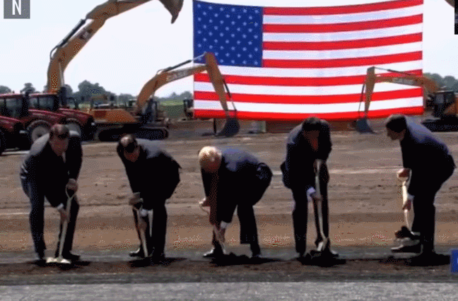 今年6月底,特朗普總統(tǒng)、富士康總裁郭臺銘、威斯康辛州州長沃克、眾議院議長保羅·瑞安、以及第一位富士康美國工廠員工克里斯多弗·默多克,一同出席富士康威斯康辛州工廠的動工儀式。