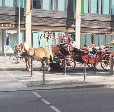 復古馬車成為歐洲不少國家低碳旅游的特色之一。圖為德國街頭的復古馬車。