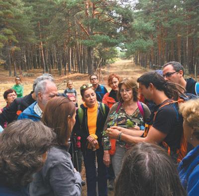 在西班牙瓜達拉馬國家公園,導游安赫爾不時停下腳步,為游客講解沿途遇到的各種動植物的種類、特性等。