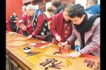 國際友人在學寫“福”字。