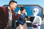 圖為科大訊飛(首屆)全球1024開發者節展示區內,參觀者在和智能語音機器人進行互動體驗。新華社記者 郭 晨攝 ……