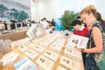 2017年9月2日,前來廈門采訪金磚國家領導人廈門會晤的中外記者,在新聞中心選取不同語言版本的《習近平談治國理政》……