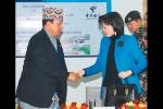 圖為1月12日,中國駐尼泊爾大使于紅(右)與尼信息與通信部部長莫漢(左)在中尼跨境陸地光纜開通儀式上握手。……