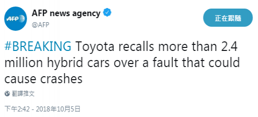 【環(huán)球網(wǎng)報道 記者 崔舒飛 張飛揚】據(jù)法新社5日最新消息,因發(fā)現(xiàn)存在可導致車禍的錯誤,豐田汽車公司召回超過240萬輛混合動力車。 據(jù)路透社報道,此次召回包括……