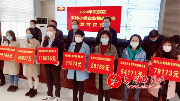 本網(wǎng)訊 (通訊員 朱駿 張敏)“漢濱區(qū)人社局這次發(fā)放的穩(wěn)崗補(bǔ)貼特別到位,切實(shí)解決了我們企業(yè)的現(xiàn)實(shí)困難,我們一定要專(zhuān)款專(zhuān)用,讓企業(yè)盡快恢復(fù)到疫前水平。”3月24日,在領(lǐng)取到9萬(wàn)多元穩(wěn)崗資金后,陜西新智匯科技股份有限公司行政副總曾紅梅激動(dòng)地說(shuō)道。當(dāng)天,漢濱區(qū)共為42家小微企業(yè)發(fā)放穩(wěn)崗資金280多萬(wàn)元。