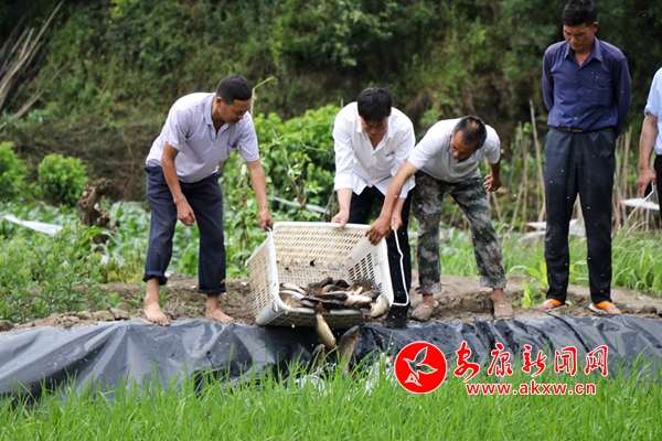 看到鄰村嘗到了甜頭,瓦房村今年也發展了52畝稻魚,并成立了瓦房村集體股份經濟合作社,吸納18戶貧困戶加入。當天,該村組織村民投放魚苗,并與公司簽訂了稻魚收購協議,預計第一批稻田生態魚10月份可以上市。