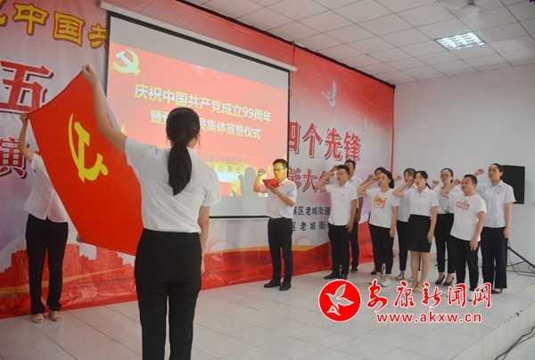 在領誓人的帶領下,街道新入黨的9名預備黨員握緊右拳,鏗鏘有力地宣讀入黨誓詞:“我志愿加入中國共產黨,擁護黨的綱領,遵守黨的章程,履行黨員義務,執行黨的決定,嚴守黨的紀律,保守黨的秘密,對黨忠誠,積極工作,為共產主義奮斗終身,隨時準備為黨和人民犧牲一切,永不叛黨。”十二句話,句句千鈞,激勵著黨員們終身踐行入黨誓言,為黨的事業奮斗終身。