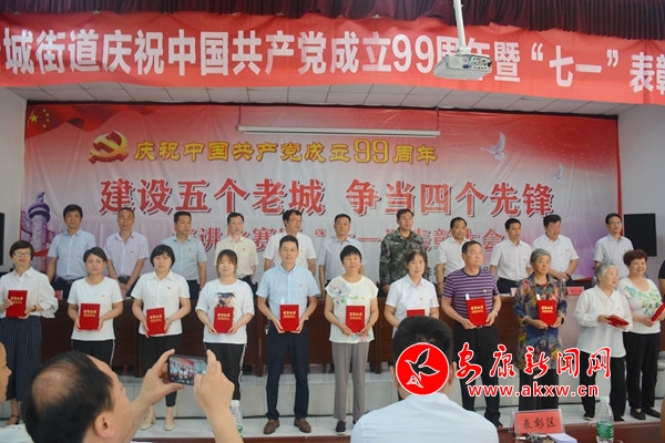 表彰會上,老城街道黨工委對積極奮斗在疫情防控第一線、城市基層黨建工作戰線上涌現出的先進基層黨組織、優秀黨務工作者、優秀共產黨員,以及演講比賽中獲獎的選手進行通報表彰并頒發榮譽證書。
