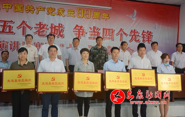 本網訊(通訊員 高佳榮)6月24日,為慶祝中國共產黨成立99周年,老城街道辦事處舉辦“建設五個老城,爭當四個先鋒”主題演講比賽暨慶“七一”表彰大會,引導廣大干部繼承和弘揚愛國主義光榮傳統,在全辦范圍內掀起“比學趕超爭先進、弘揚正氣樹標桿”的熱潮。區政協主席李建飛,區委常委、人武部部長孟高峰出席會議。
