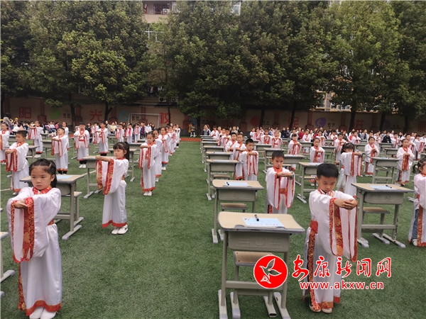 為讓一年級新生領略到中華民族傳統文化的魅力,9月23日上午,漢濱區江南小學攜手安康市博物館文廟管理所,隆重舉行了一年級新生“開筆禮”儀式,322名一年級新生開筆習禮學寫“人”字。開筆禮環節由安康文廟禮儀官趙琨主持。分為正衣冠、感恩鞠躬、朱砂啟智、擊鼓明志、啟蒙開筆等環節。通過系列活動,一年級新生感受到了知識及傳統文化的神圣,做“勤奮好學、端正品行、知書識禮、尊敬師長”好少年的美好愿望已逐漸在孩子心田生根發芽。(劉改/圖文)NBv安康新聞網