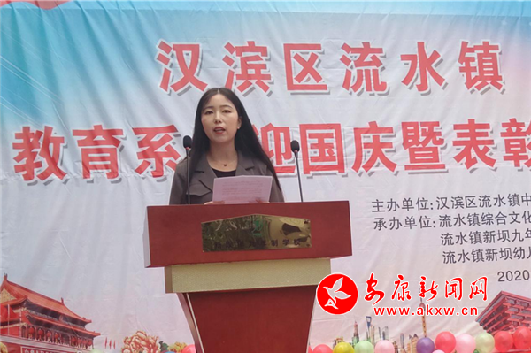本網訊(通訊員 何海麗 馬青娟)9月28日,漢濱區流水鎮中心校在新壩九年制學校隆重召開迎國慶暨先進集體、先進個人表彰大會,進一步激勵了全鎮教師立足本職,扎根山區工作,為提高全鎮教育教學質量,激發全體教師為辦好群眾滿意的教育事業而奮斗。