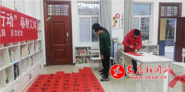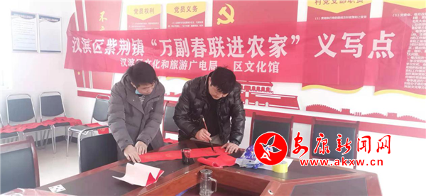 本網(wǎng)訊(通訊員 宮再朋 張艷)1月27日,在紫荊鎮(zhèn)各村文化活動(dòng)室里,來(lái)自各村的書(shū)法愛(ài)好者們揮毫潑墨,為村民們義寫(xiě)春聯(lián)。一副副飄著墨香,飽含著濃濃年味、美好祝福的春聯(lián)相繼出爐,行書(shū)、楷書(shū)、隸書(shū)等多種字體各顯神韻,不一會(huì)就鋪滿(mǎn)了地面。