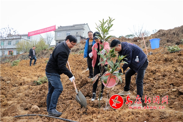 本網訊(通訊員 周濬)陽春三月,春意盎然,正是植樹造林的好時節。3月12日上午,漢濱區農業農村局18名干部來到位于建民辦青春村的植樹點,栽下枇杷樹苗52株,為生態漢濱再添新綠。Yh7安康新聞網