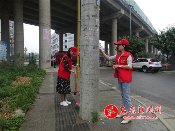 5月12日,該校的32名志愿者帶上工具來到鳳臺新區的朝鳳路段開展清掃整治活動。沿途的紅馬甲形成了一道亮麗的風景線,各小組分工合作,有的清掃人行道,有的清理綠化帶,還有的負責清除“牛皮癬”和“野廣告”。大到紙盒、塑料袋,小到煙頭、枯樹葉、果皮紙屑,全逃不過志愿者的“火眼金睛”。有些雜草、雜物無法用工具進行清理,志愿者們就徒手清除。