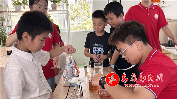 鳳臺小學學生郝錦燃表示,這些大哥哥大姐姐非常認真負責,給我們介紹一些知名的大學,讓我們增長了見識。其次課間他們會帶我們打乒乓球、打籃球,帶我們做一些化學實驗,讓我們增長了知識,使我們的暑假過得更有意義。