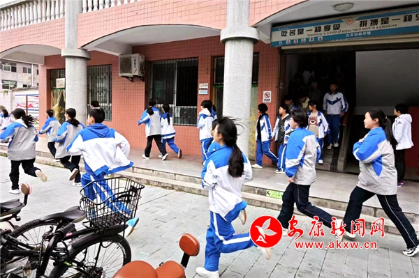 上午8時15分,隨著校園廣播發出的“警報聲”,全校教師及工作人員迅速到達指定崗位,40個教學班3000余名師生立即抱頭、捂鼻、蹲下就地避險。隨即,各班隨堂老師沉著冷靜,迅速指揮學生有序撤離教室,學生們緊張而不慌亂,聽從指揮,按規定線路、要求、有秩序地迅速疏散到安全聚集地。