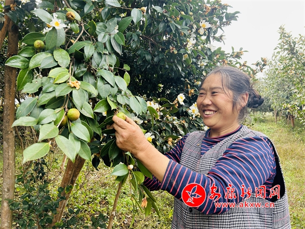 “今年在這個園子里從正月份干到現在,大概有30000多塊錢工資。這兩天在茶園里撿茶果150元一天,再過幾天園子里還割草,活還很多,活還好做、輕松。”村民余祖錄樸爽朗的笑聲和自豪的夸贊聲給這個靜謐的村子孕育了無限生機。陽光仍盛,他手中的活兒還未停歇,天高云淡風輕,抬眼可望的勝雪油茶花勾勒出了一幅美好的山鄉“豐”景圖。