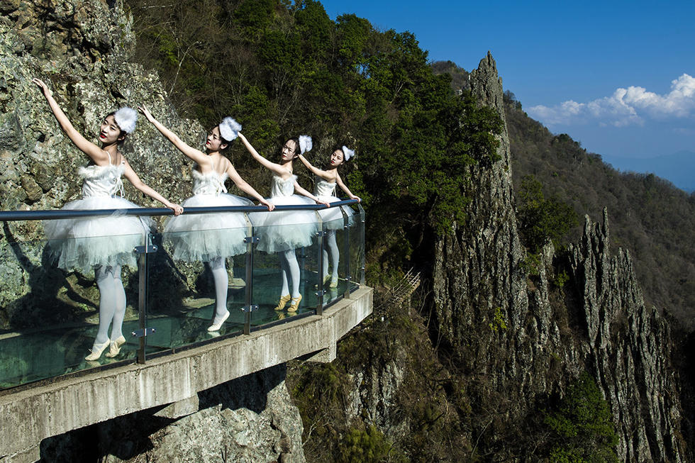 在懸崖絕壁的玻璃棧道上,芭蕾演員們身著潔白的芭蕾服,腳踩透明玻璃,隨著音樂(lè)的響起,她們跳出各種唯美的芭蕾舞動(dòng)作。美麗險(xiǎn)峻的山峰,輕巧婀娜的舞姿,將空中芭蕾與山的險(xiǎn)奇有機(jī)結(jié)合,給春天里的南宮山再添了幾分美景。達(dá)人們紛紛走到玻璃棧道,用手中的相機(jī)留念拍照,與粉絲們暢談著 “空中漫步”,低頭俯瞰綿延山川的絕色美景。7un安康新聞網(wǎng)