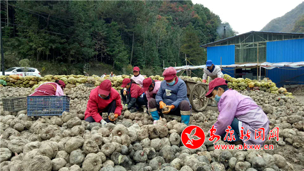 魔芋作為蔣家關的主導產業,為了打好脫貧攻堅戰,蔣家關村依托其獨特的地理環境優勢,科學謀劃、精心管護,并通過三變改革資金、貧困戶產業資金成立了魔芋農業專業合作社,把貧困戶鑲嵌在了產業鏈上;貧困戶依靠加工企業的帶動,如今,魔芋成了促進蔣家關村農民增收、農業增效的香餑餑。