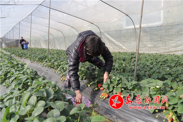 嵐皋:農業采摘園大棚草莓成熟迎游客