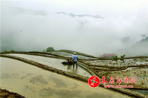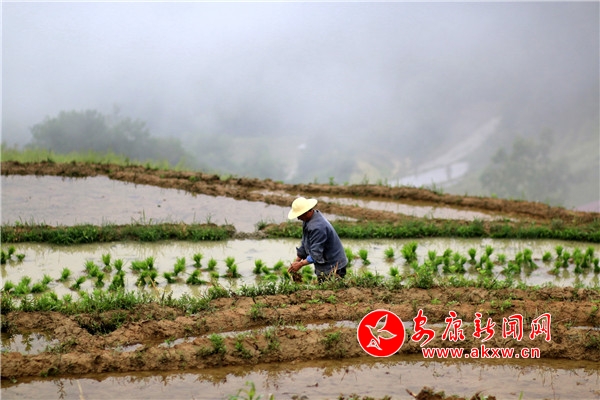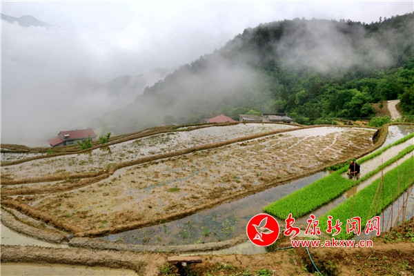 本網訊(通訊員 廖霖 馬桂芳)五月立夏農耕忙,插下秧的梯田田水如鏡,波光粼粼;青山、白霧、梯田、鮮花,寧靜和諧的田園美景里,錯落有致、形態各異的梯田與朝霞和農民忙碌勞作的身影一起構成了一幅美麗的畫卷,吸引不少游客和攝影愛好者前來觀賞拍攝。bS8安康新聞網