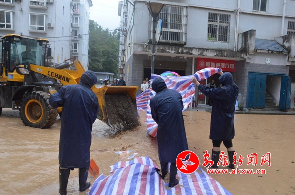 應急搶險隊在平時多演習,在關鍵時刻站出來,在緊急時刻生急智,用用一個個披著雨衣的身影踐行初心使命,以實際行動在暴雨之中中彰顯著民主鎮黨員干部的本色擔當。