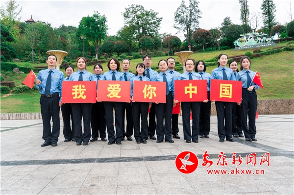 干警們著藍色檢察制服來到巴山珍稀植物園,以國旗為中心,組成一個大“五角星”,每個“角”上的干警心向國旗,莊重的同國旗合影,表達對祖國的祝福:“立檢為公,執法為民,是我們的初心;堅守法治,堅守底線,是我們的使命。我們依法能動履職,為大局服務,為人民司法,努力讓人民群眾在每一個司法案件中感受到公平正義。祝祖國國泰民安,繁榮昌盛,我愛你中國。”