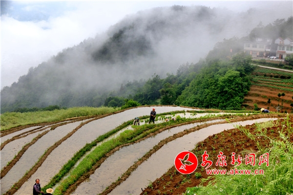 本網訊(通訊員 廖霖 馬桂芳)五月立夏農耕忙,插下秧的梯田田水如鏡,波光粼粼;青山、白霧、梯田、鮮花,寧靜和諧的田園美景里,錯落有致、形態各異的梯田與朝……