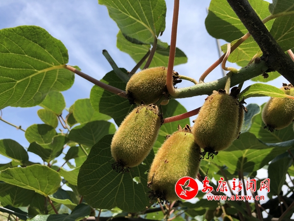 本網訊 (通訊員 楊莎)仲夏時節,嵐皋縣民主鎮榨溪村的千畝獼猴桃園區內,一樹樹獼猴桃綠葉舒展,依偎在水泥架上,放眼望去,一片碧綠,毛茸茸的獼猴桃,高掛枝……