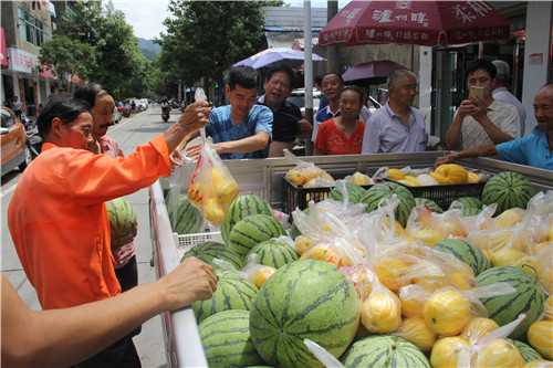 “這瓜多少錢一斤?”“不好意思,這是送給環衛工人們的,不賣。”7月18日,嵐皋縣眾達農業園區工作人員載著一車新鮮的本地瓜果,來到建設路縣環衛保潔公司門口……