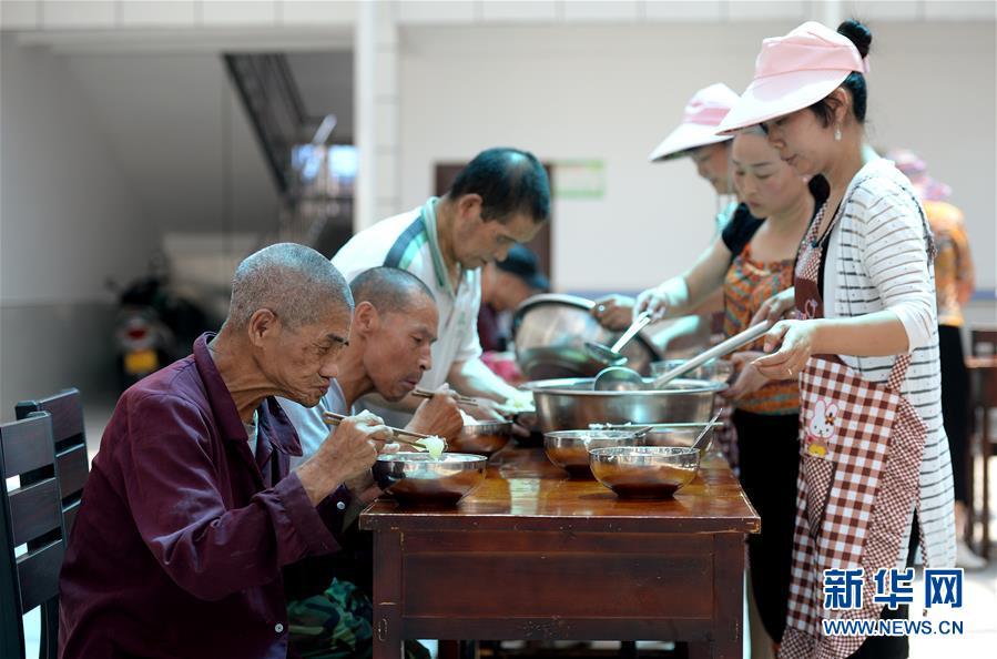 寧陜縣中心敬老院五保失能托養中心內,托養人員在吃午餐(8月20日)