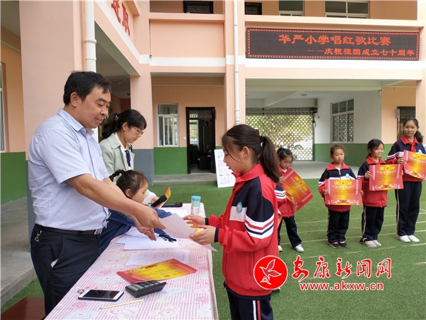 唱紅色歌曲,抒愛國之情。《歌唱祖國》、《今天是你的生日》、《我愛北京天安門》......一首首嘹亮的歌聲唱著華嚴小學全體師生對祖國的熱愛,進一步增進了該校師生對黨、對社會主義祖國的樸素情感。