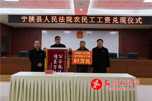本網(wǎng)訊(通訊員 呂家奎)為了切實(shí)保障農(nóng)民工合法權(quán)益,11月25日,寧陜縣人民法院舉行拖欠農(nóng)民工工資發(fā)放儀式,農(nóng)民工代表崔某共領(lǐng)取拖欠工資812943元,取得了寧陜縣2020年度根治欠薪冬季攻堅(jiān)專項(xiàng)行動(dòng)“開(kāi)門紅”。