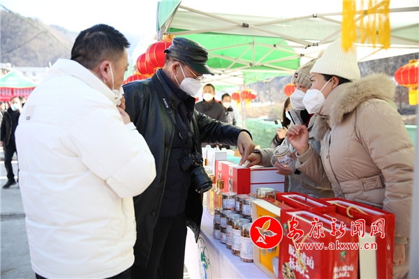 年貨節現場設置了30余個展位,全縣30余家農產品加工銷售企業參加活動,匯聚了代表寧陜地方特色的臘肉、香菇、木耳、核桃油等100余種農副產品,充分展示了寧陜豐富的名優特產農產品資源及發展成果,為全縣人民送上了本地名優農產品“年貨大禮包”。除了線下采購外,現場還有主播直播帶貨,網友可以在抖音等平臺,通過線上來采購寧陜山珍。